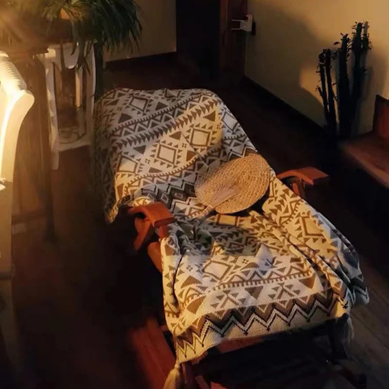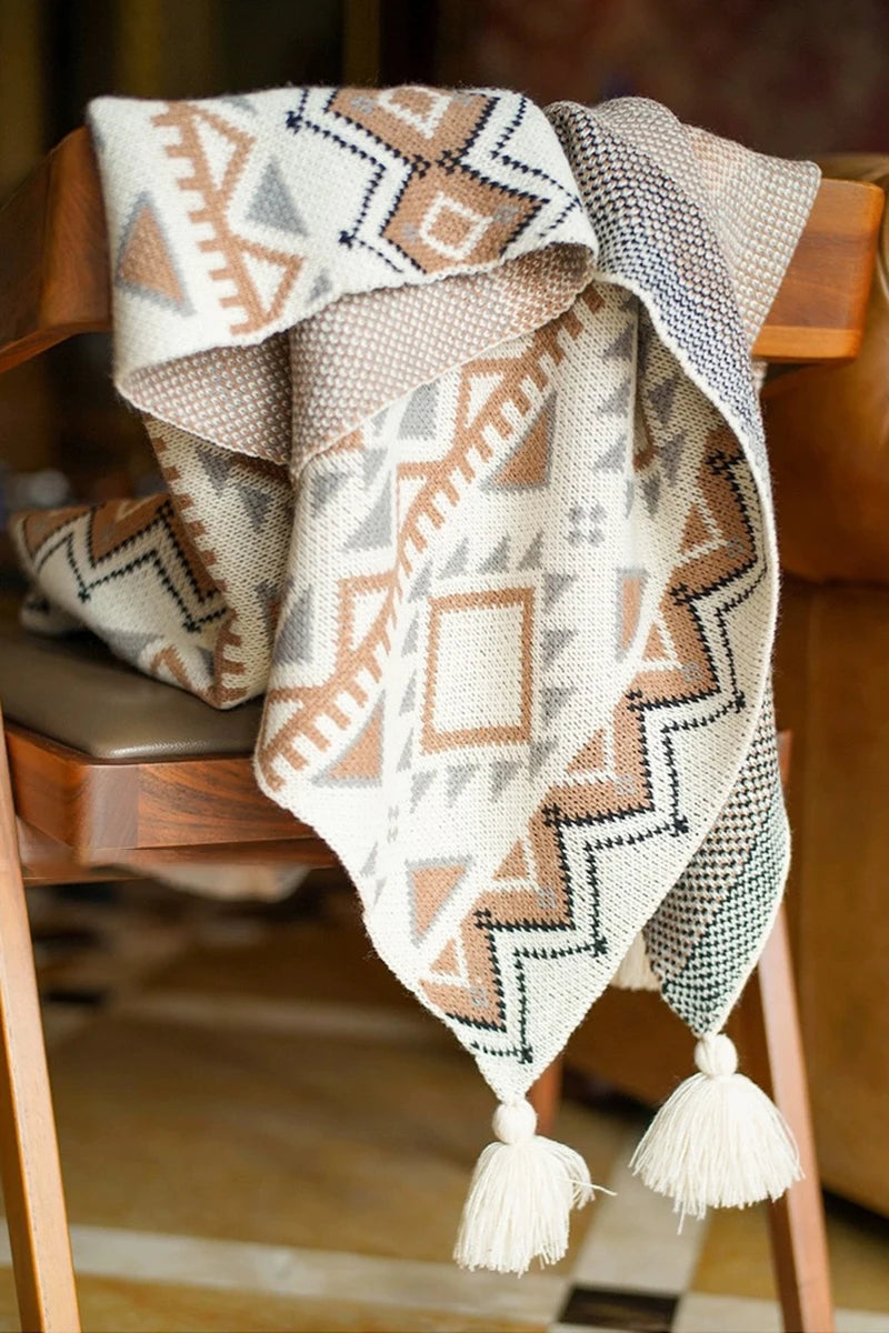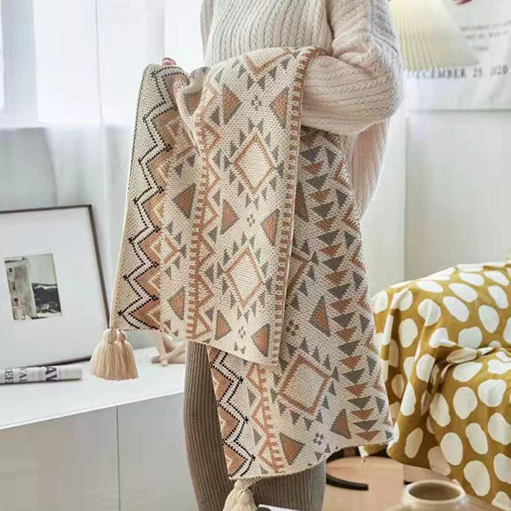 Cozy Bohemian Aztec Pattern Knit Throw Blanket